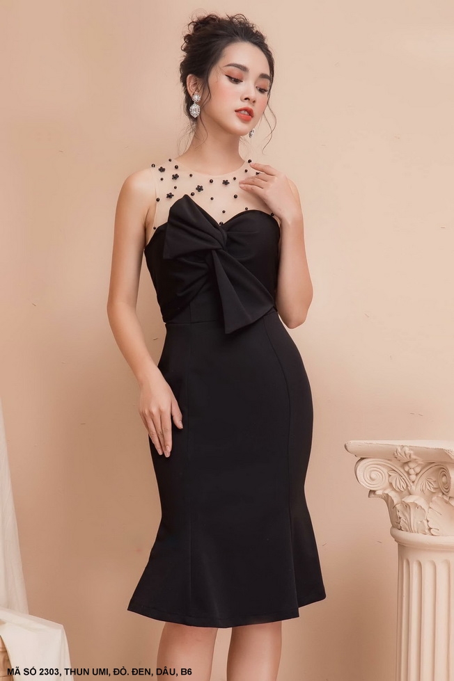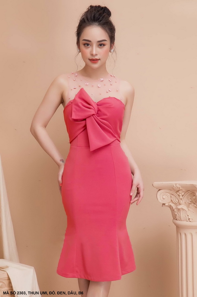ĐẦM CÚP NGỰC ĐÍNH NƠ LỚN TRƯỚC NGỰC