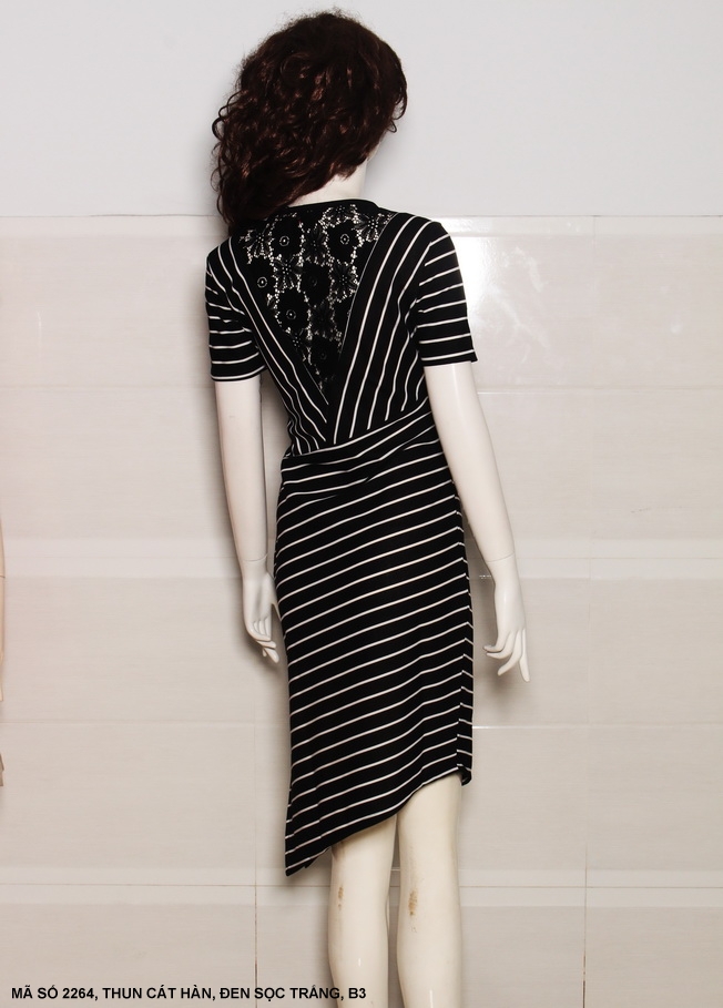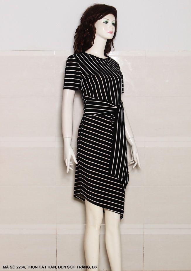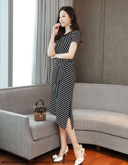 Đầm Sọc Lai Nhọn Thắt Nơ Eo